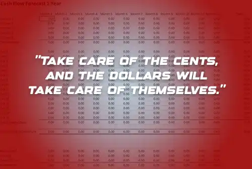 When doing your cashflow too much detail is never enough, every little item counts. Every expence, and form of income counts. From a little as the cost of bin liners to fuel usage, rent or replacing a vacuum cleaner bag. The little things add up and are more often overlooked. What you put in is what you should expect out.